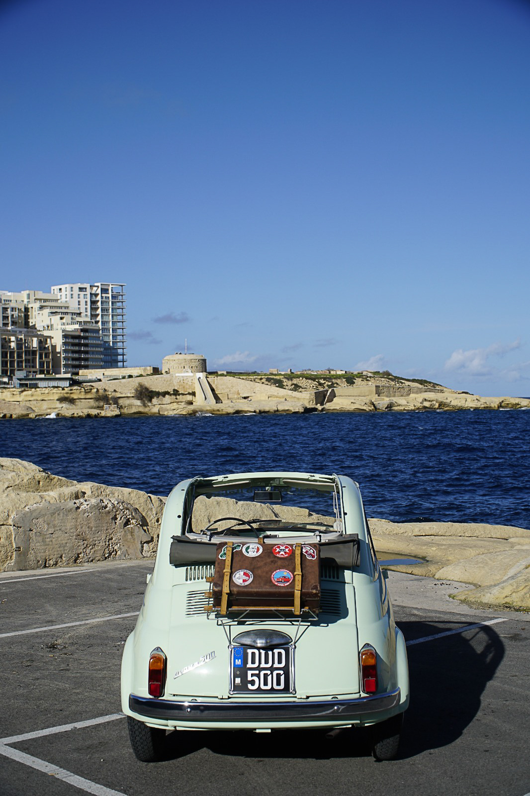 Samochód, którym przemierzaliśmy Maltę, to Fiat 500 D z 1963 roku — szczytowy moment tej wersji. Wariant ten charakteryzuje się w pełni otwieranym, zwijanym płóciennym dachem oraz drzwiami otwieranymi „pod wiatr”, tzw. kurołapkami. Dach, poza walorami estetycznymi i wrażeniem jazdy cabrio, daje dodatkowe poczucie przestrzeni.