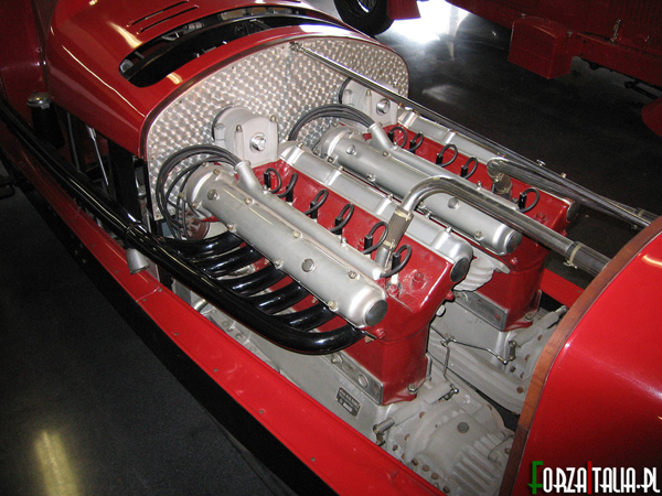Dalej mamy wystawione Alfy, które wyglądają niczym auta gangsterów z lat 30. Na końcu czeka na nas kolejny dwa rodzynki – Alfa 158 Gran Premio i Alfa Bimotore. Pierwsza z nich jest chyba większości znana, jednak model Bimotore z 1935 roku zawstydza osiągami współczesne samochody sportowe. Dwa rzędowe, ośmiocylindrowe silniki o łącznej pojemności ponad 6,3l osiągały 540KM i rozpędzały to „auto” do 325 km/h. W latach 30 Alfa Romeo szukała auta które mogło by pokonać niemiecką konkurencję, w związku z tym zgłosili się do Scuderii Ferrari, aby ta zaprojektowała dla nich nowy bolid.