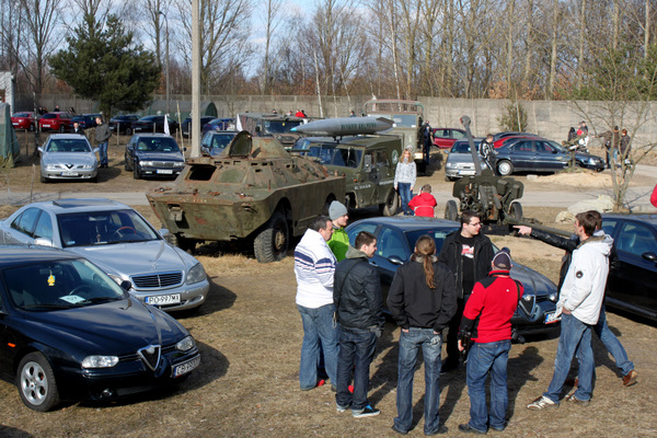 Po krótkiej odprawie wszystkie załogi ruszyły w drogę. Kręta trasa krótkiego „rajdu turystycznego” prowadziła przez pagórkowate tereny na zachód od Bydgoszczy. Metą a zarazem głównym miejscem spotkania było Centrum Militarne Krąpiewo. Obiekt ten nie tylko jest miejscem imprez militarnych ale i motoryzacyjnych. Wcześniej wielokrotnie odbywały się tam rajdy off-roadowe oraz zloty motocykli. Tym razem zagościły tam piękne włoszki. Jak wiadomo włoski design nie ma sobie równych, jednak na tle pojazdów i urządzeń militarnych oraz surowego otoczenia piękno włoskich karoserii wyjątkowo mocno biło po oczach.