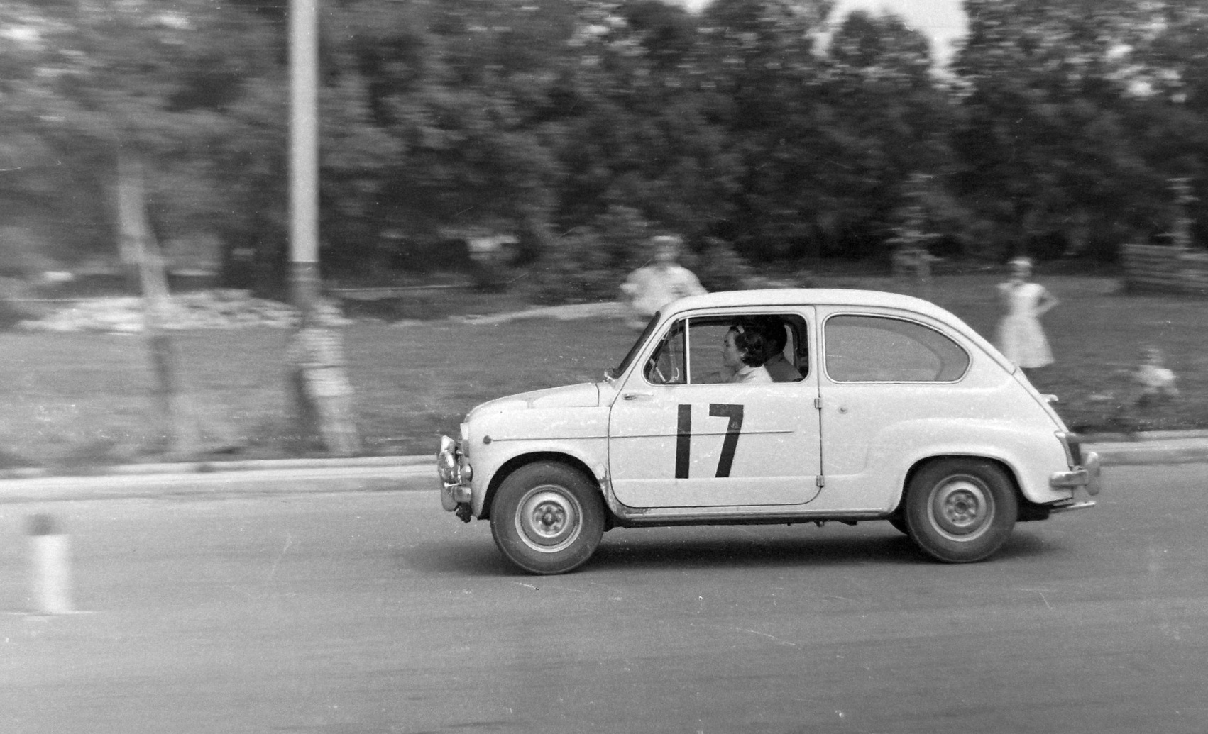 W niedługim czasie po nabyciu Fiata, Sobiesław Zasada postanowił sprawdzić jego możliwości podczas rozgrywanego w Finlandii Rajdu 1000 Jezior. Kompanem dalekiej wyprawy był również Franciszek Postawka. Polska załoga nie zajęła może czołowego miejsca w tej imprezie, ale na pewno zyskała dużo w kwestii prowadzenia tak małego wozu po naprawdę niełatwym terenie. Następnie przyszedł czas na krajowe rajdy. Ewa Zasada również miała na swoim koncie swój osobisty sukces, który odniosła za kierownicą Fiata. A miało to miejsce w 1962 roku podczas wyścigu „O błękitną wstęgę serpentyn Ojcowa”. Na zorganizowanej na początku czerwca imprezie. Choć konkurencja dysponowała naprawdę mocnymi maszynami z zachodu, małżonka polskiego mistrza kierownicy wywalczyła wtedy pierwsze miejsce w Klasie 3., zostawiając za sobą nawet dwóch kierowców jadących na usportowionych FSO Syrenach.