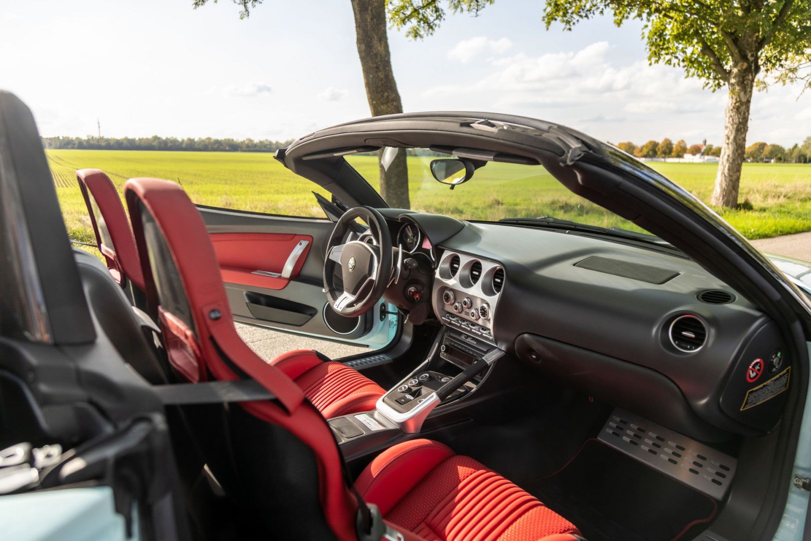 Według domu aukcyjnego RM Sotheby’s ma on na liczniku zaledwie 514 mil (828 km). Podobać się może oryginalne połączenie kolorów – lakieru nadwozia Blu Celeste z czerwonym soft topem i czerwono-czarnym wnętrzem. Właściciel do pojazdu dołącza wszystkie oryginalne dokumenty i akcesoria wraz z fabrycznie oprawionymi zdjęciami auta, książką pamiątkową i instrukcją. W zestawie znajduje się nawet oryginalna karta produkcyjna z Museo Storico Alfa Romeo oraz para toreb na ubrania w kolorach takich, jak we wnętrzu.