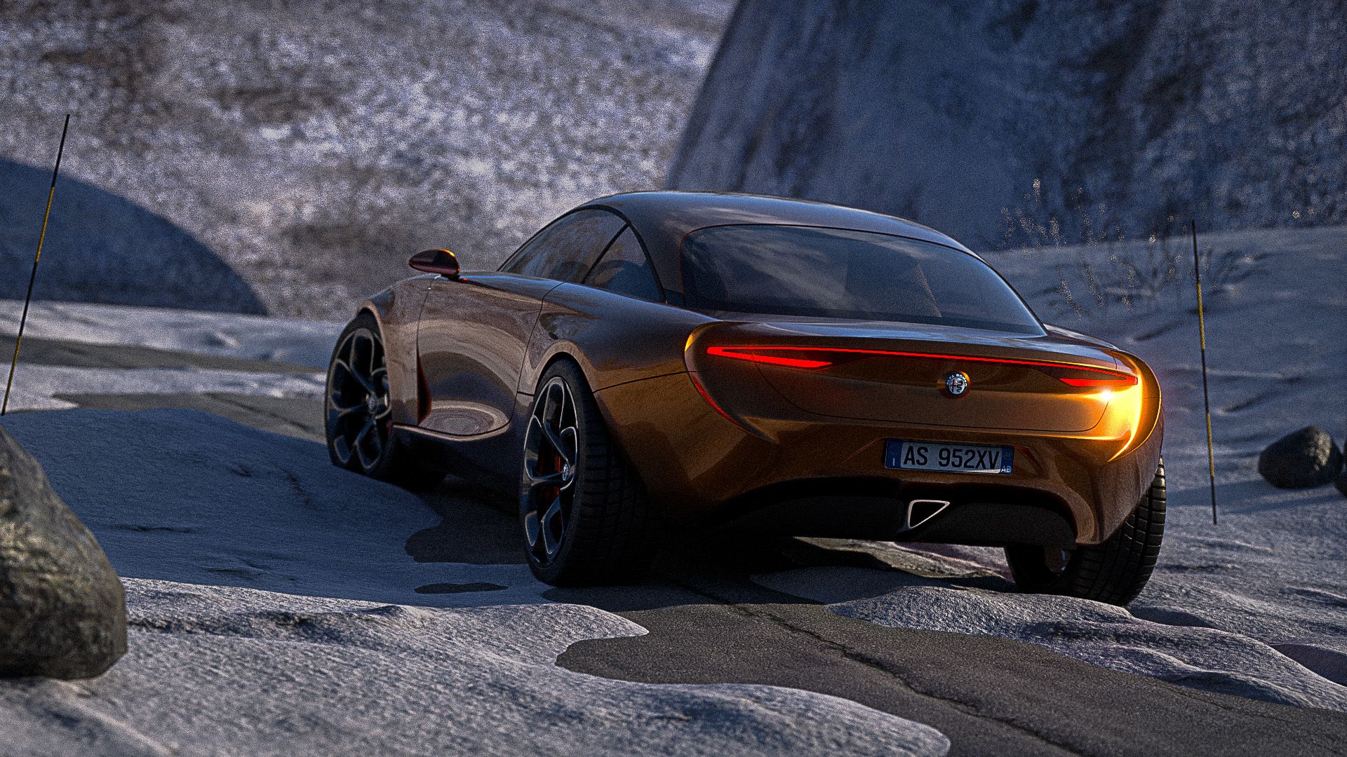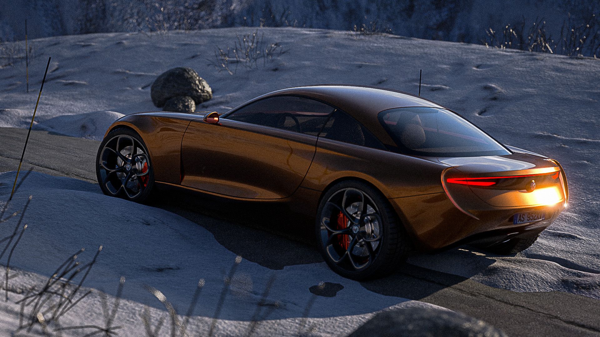 Z tyłu znajdziemy również smukłe światła rozciągające się na całą szerokość zgodnie ze współczesnymi trendami. Pośrodku umieszczono końcówkę układu wydechowego. Podobać się może mocno opadająca linia dachu, nadająca pojazdowi sportowego charakteru, kosztem walorów praktycznych. Samochód w takiej postaci równie dobrze mógłby nosić nazwę GTV oraz korzystać z nowoczesnej formy elektryfikacji.