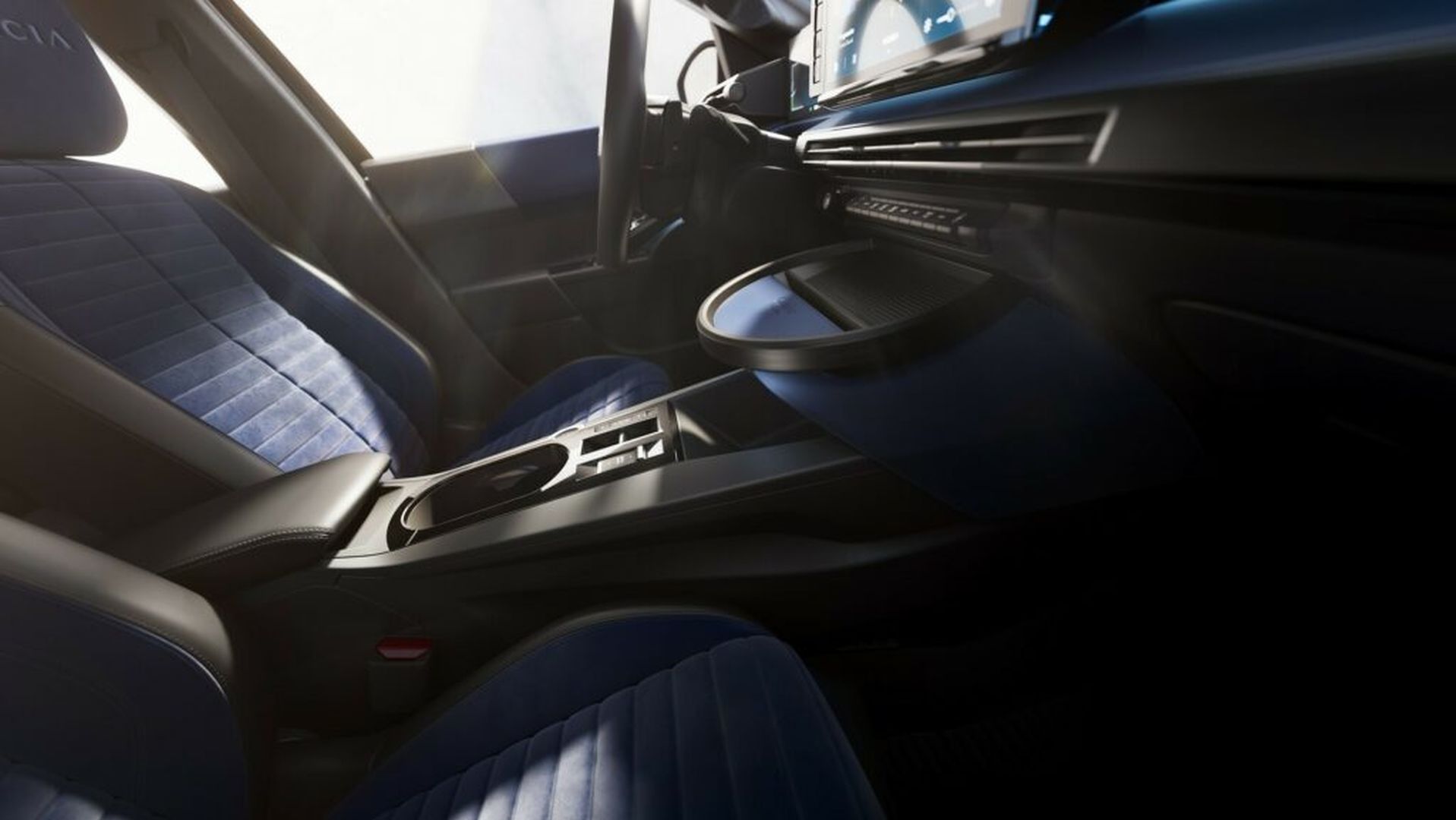 Wnętrze wydaje się być nietknięte – z przodu mamy podgrzewane fotele z niebieską aksamitną tapicerką. Całości towarzyszy 10,25-calowy cyfrowy zestaw wskaźników i dopasowany 10,25-calowy system informacyjno-rozrywkowy S.A.L.A. Model posiada również półautonomiczny system jazdy poziomu drugiego, adaptacyjny tempomat, system autonomicznego hamowania awaryjnego i monitorowania martwego pola.