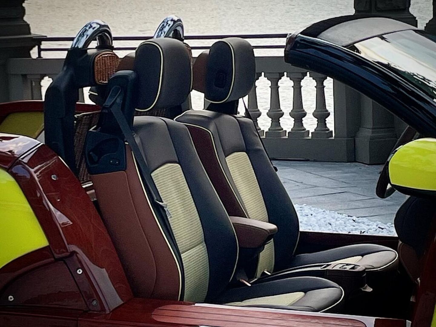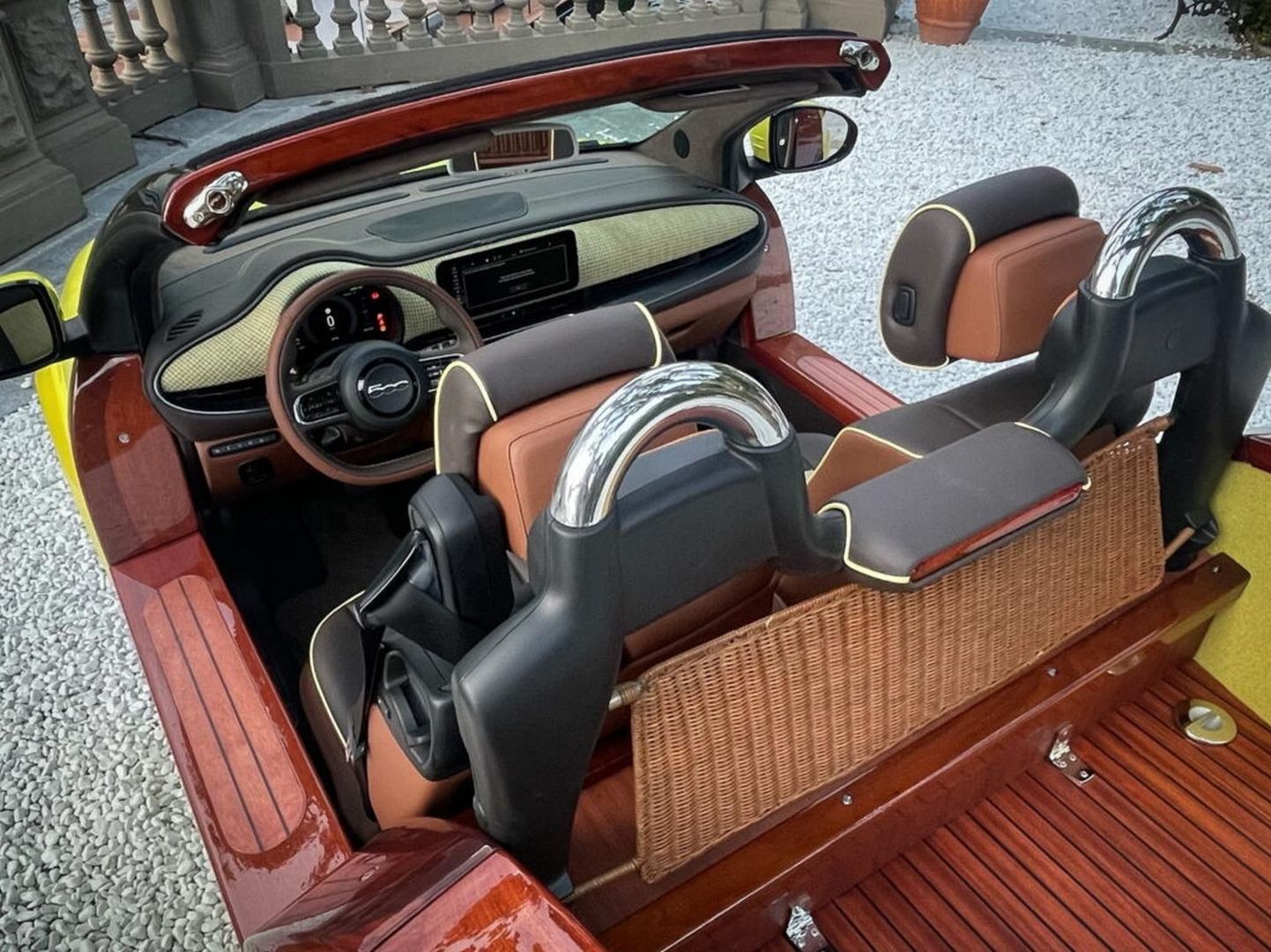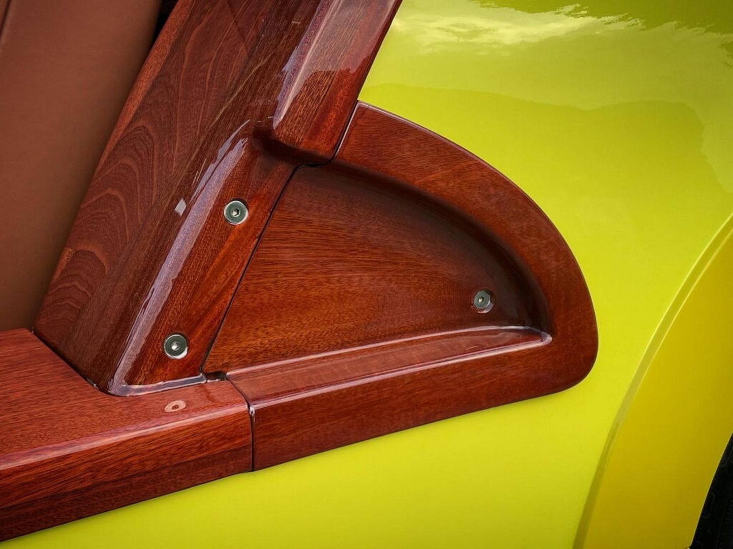 Najważniejszym elementem EV jest brak drzwi, dachu, tylnych słupków i tylnej klapy, z błyszczącym mahoniowym drewnem Sapelli pokrywającym wycięte obszary. Aluminiowe wstawki w górnej części przedniej szyby sugerują, że w zestawie może znajdować się płócienny dach, który przydałby się w palącym słońcu śródziemnomorskiego kraju.