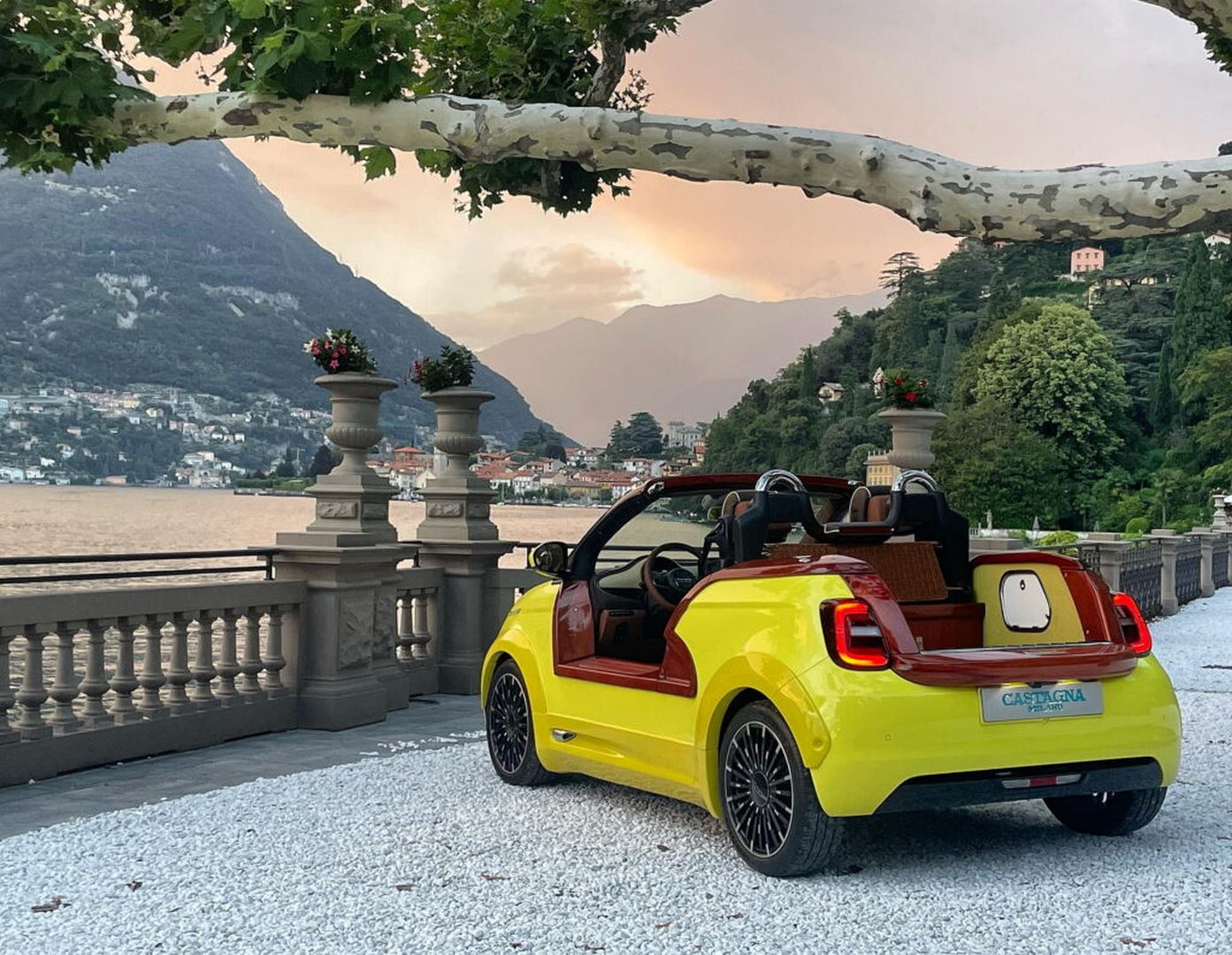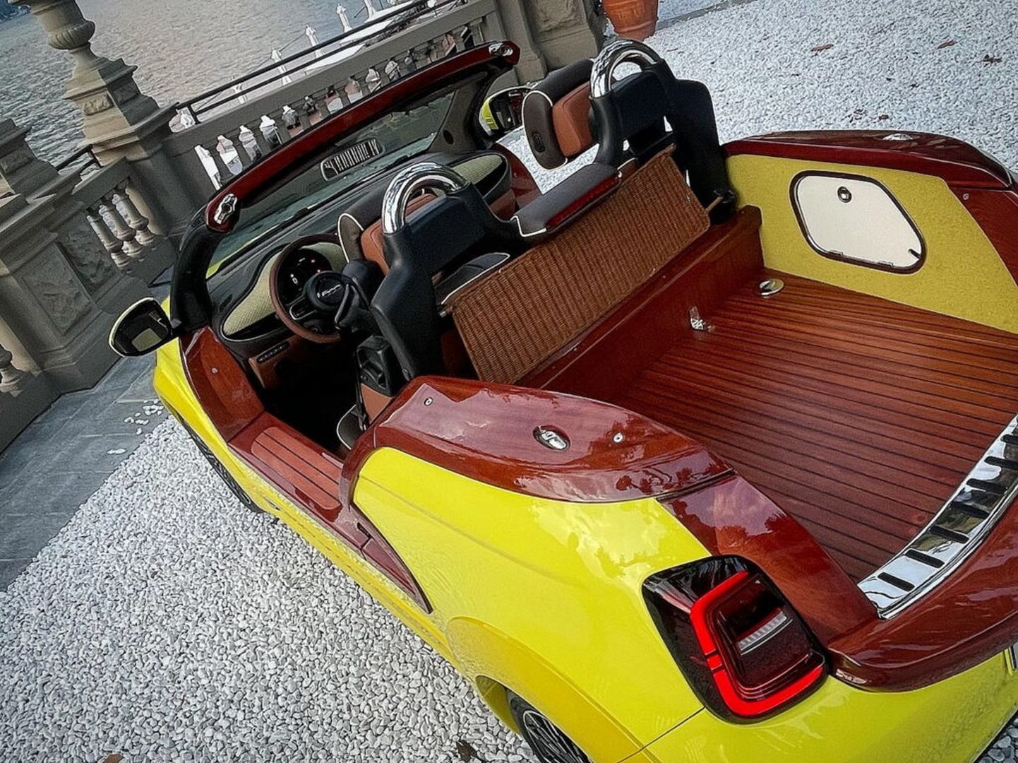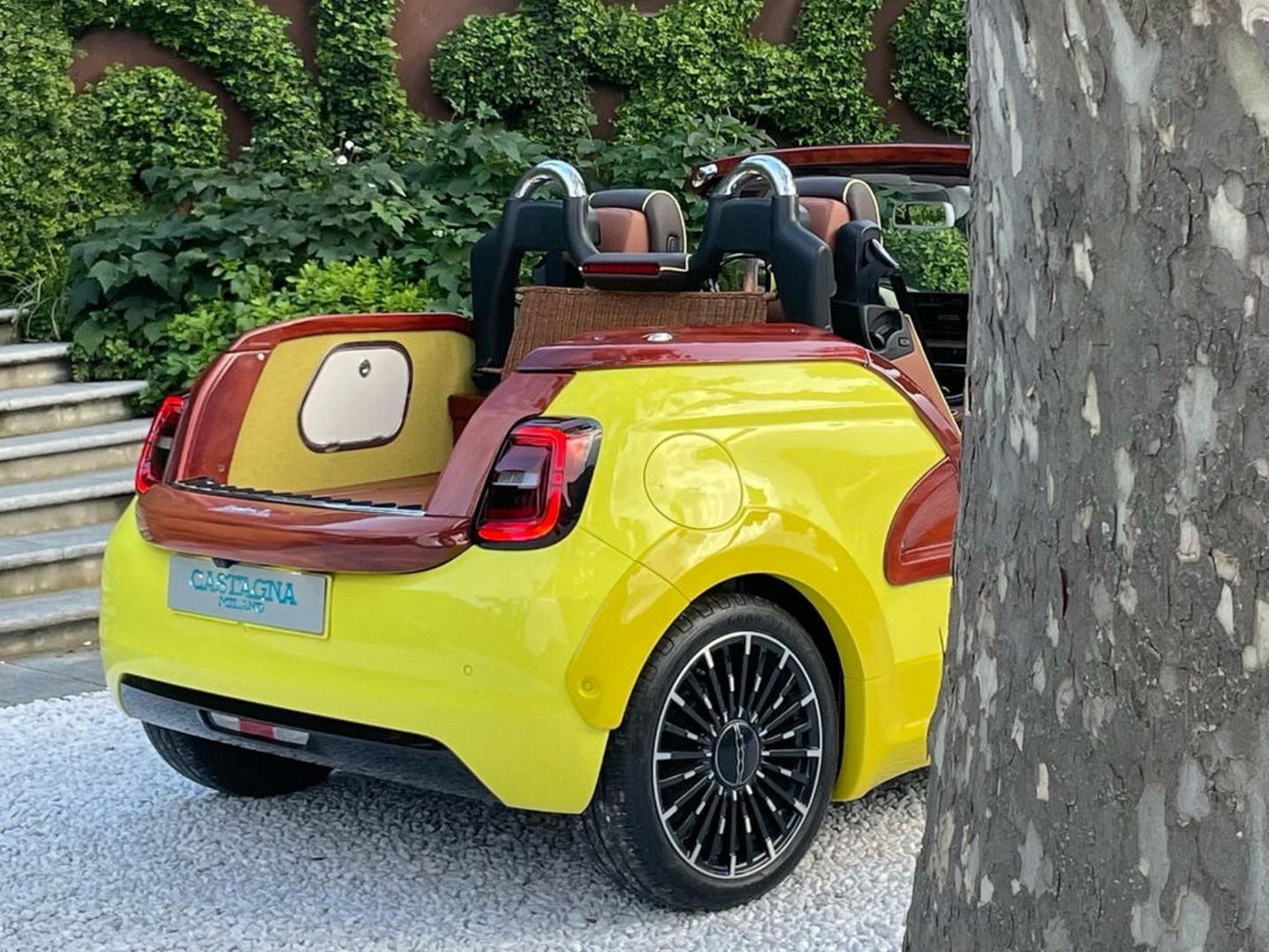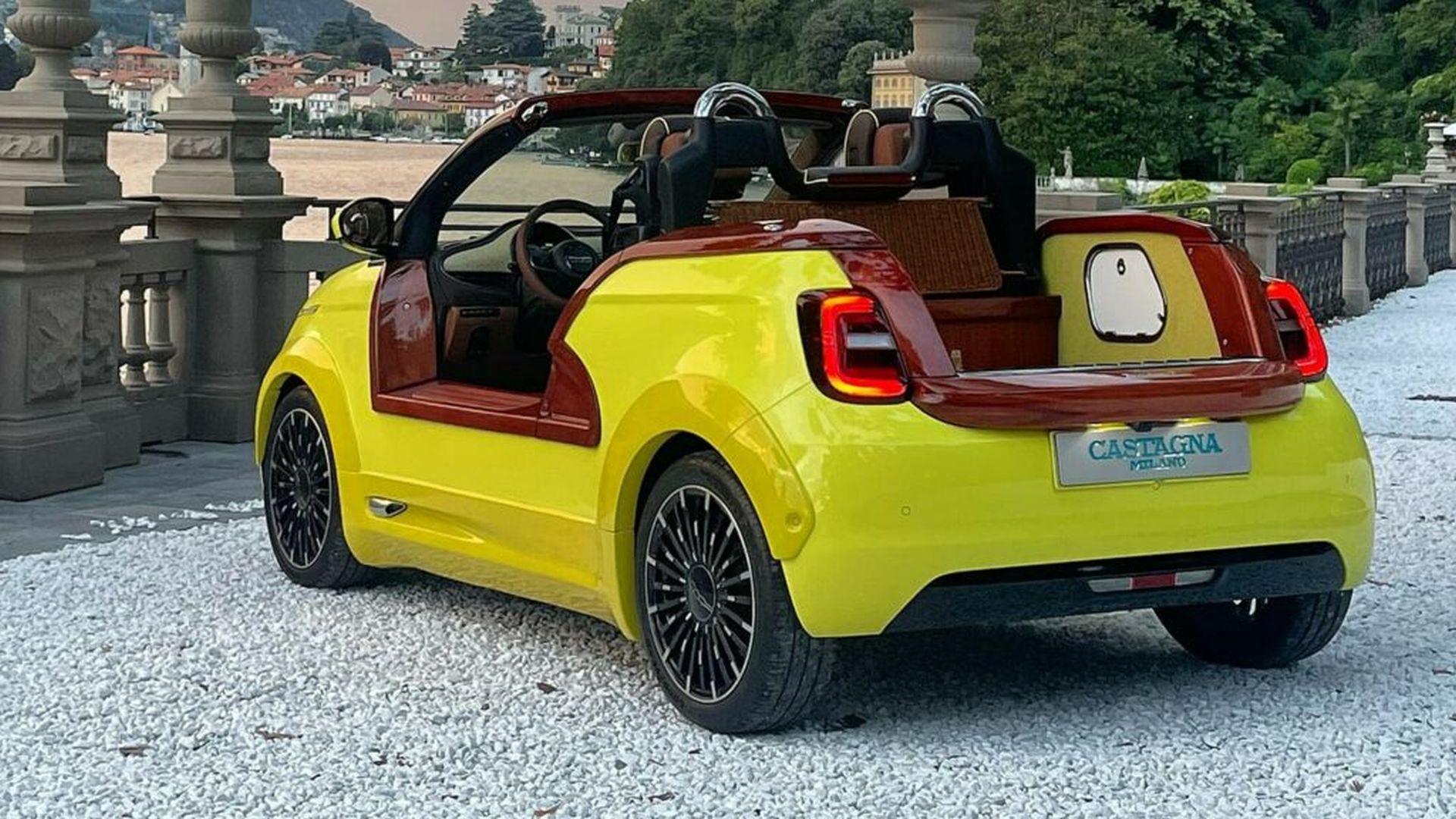 Żółty odcień wybrany dla nadwozia wygląda podobnie do tego zastosowanego w Abarthcie 500e. 17-calowe felgi aluminiowe Diamond Cut zostały przeniesione z flagowej wersji La Prima modelu 500e. Wewnątrz Castagna Milano usunięto tylną kanapę, tworząc obszerną przestrzeń ładunkową. Przednie fotele zastąpione nowymi, pochodzącymi z BMW, wraz z zintegrowanymi pasami bezpieczeństwa. Producent nadwozia dodał nowe materiały do tapicerki (w tym ekoskórę), łącząc trzy różne odcienie (czarny, brązowy i kremowy). Wraz z miękkimi dywanikami i drewnem inspirowanym wykończeniem jachtów, ta specyfikacja nadaje małemu 500e bardziej ekskluzywny charakter.