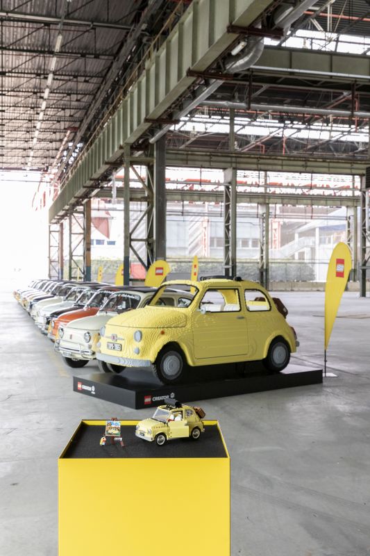 Marki Fiat i LEGO stworzyły nowy zestaw Fiat 500 LEGO Creator Expert, który z dniem 28. lutego został wprowadzony na rynek podczas specjalnego wydarzenia w Spazio MRF-Mirafiori w Turynie. Przy okazji odsłonięto naturalnej wielkości Fiata 500 zbudowanego z 189 032 klocków LEGO. Jego stworzenie zajęło 830 roboczogodzin.