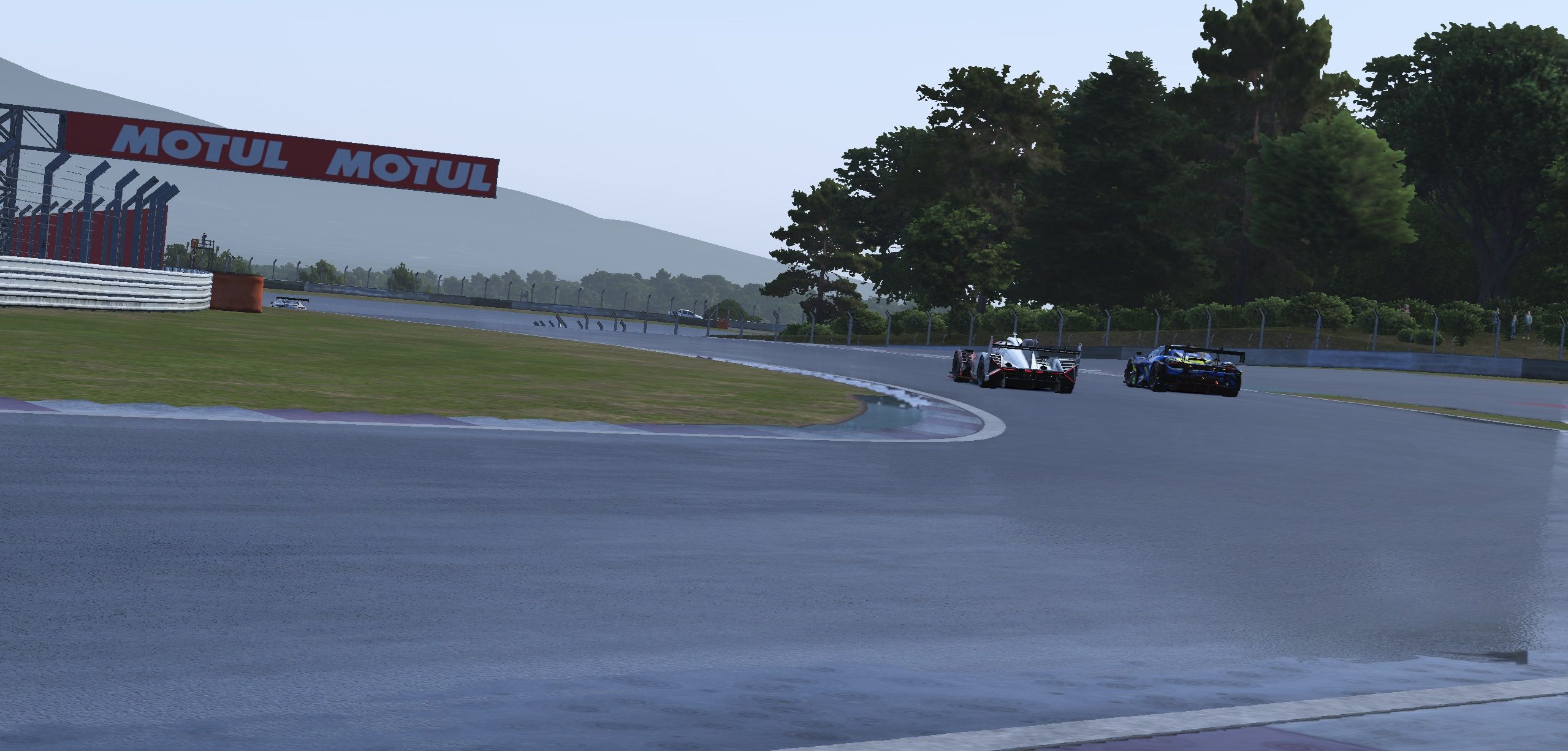 Pierwszy double stint był bardzo udany. Już po T1 awansowaliśmy na P4. Gdzieś tam po drodze straciliśmy parę pozycji po tym, jak rywal nas obrócił. Ale konsekwentna jazda i unikanie błędów zaowocowało awansem na P2 i budowaniem przewagi nad P3. Jedyny większy błąd, jaki popełniłem, zakończył się ostrą kontrą na wyjściu z T1 i utratą 3 sekund. Raz też niefortunnie przydzwoniłem w GT3 przed sobą na dohamowaniu do szykany. Tempo było przyzwoite, trzymałem się godnie P1, utrzymując stratę około 13 sekund. W najgorszym momencie strata urosła do 18 sekund, ale pod koniec stintu zmalała znowu do okolic 13 sekund. Gorzej wyglądały ostatnie dwa stinty – najpierw spóźniony wyjazd z alei serwisowej, później spin bez uszkodzeń i ponownie jedno kółko wokół własnej osi po uderzeniu samochodu na P4, które miało stratę ponad okrażenia do nas. Podsumowując: mam mieszane odczucia. Po starcie z P7 była radość z awansu na P3, ale widząc realną szansę na P2, na tyle oswoiłem się z myślą o dowiezeniu takiego wyniku, że P3 na mecie było słodko-gorzkie… Doszły mnie słuchy, że „Fartest Driver of the Race” został Bąku. Gratuluję!