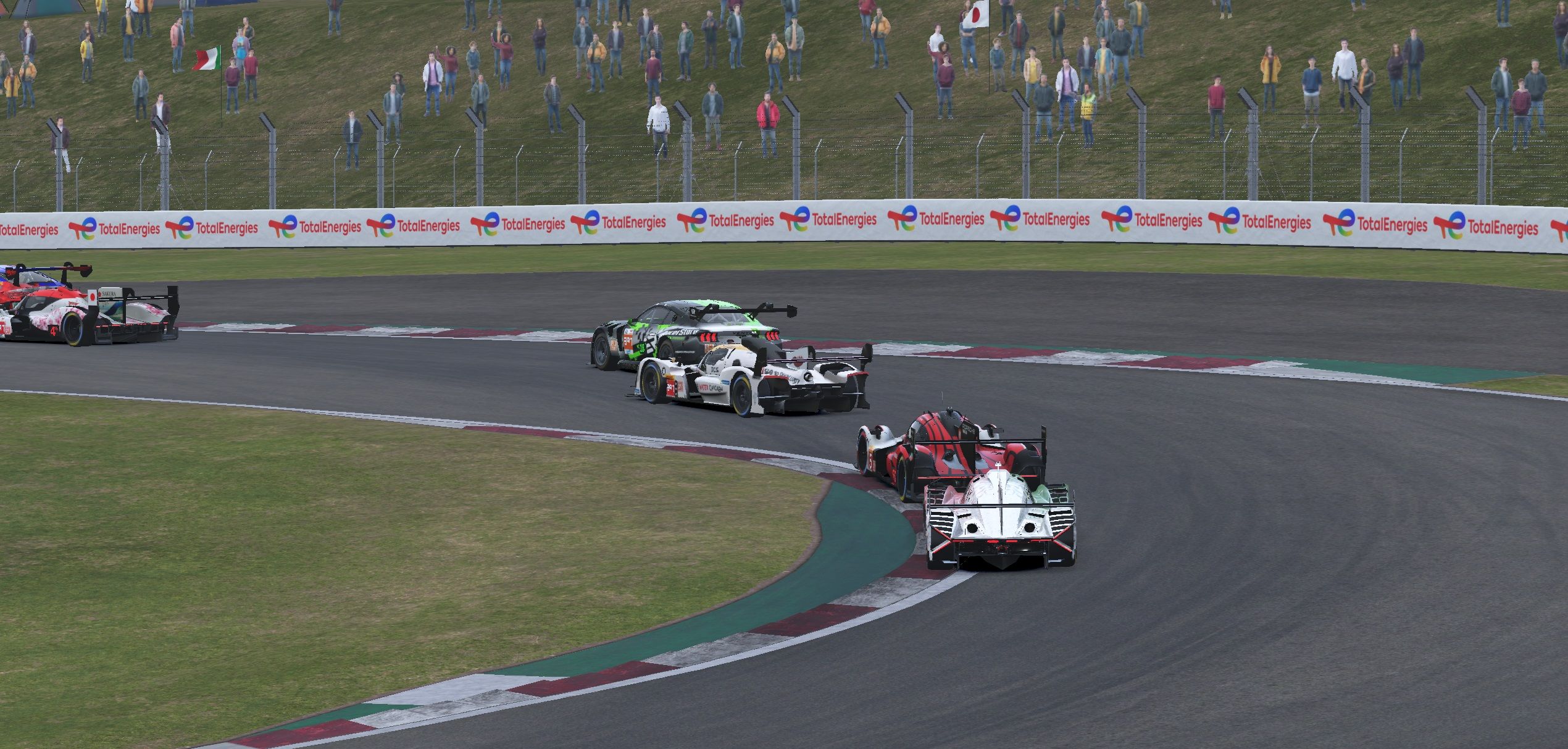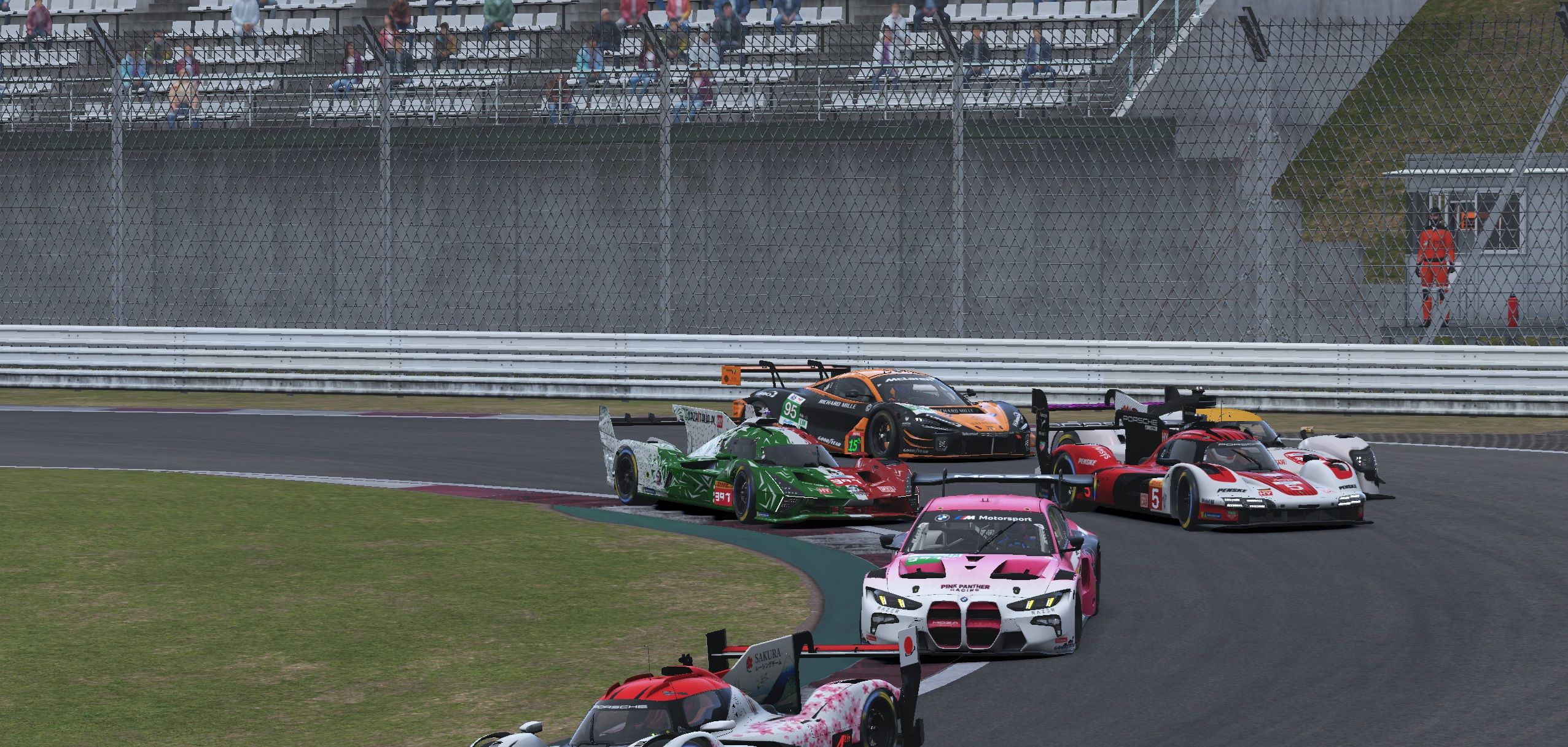 W kwalifikacjach obie ekipy ForzaItalia.pl eRacing uplasowały się w środku stawki – #501 z czasem 1:29.526 zajęło siódme miejsce, a #500 z wynikiem 1:29.700 – dziewiąte. Dla porównania, lider przejechał pętlę toru Fuji w 1:28.694. Zapowiadał się więc wyścig pełen strategii i cierpliwości – tym bardziej, że prognozy wskazywały na opady deszczu, które mogły odwrócić losy rywalizacji. Start przebiegł imponująco dla ekipy #501 – Lucjan Próchnica po pierwszym zakręcie awansował o trzy pozycje, wskakując na P4. Niestety, nie wszyscy mieli tyle szczęścia. Zespół #500 zaliczył kontakt w T2 – zbyt optymistyczne hamowanie skończyło się najechaniem na tył Astona Martina Valkyrie, co zdestabilizowało brytyjski pojazd, który niczym jak pocisk uderzył SC63, doprowadzając do dość rozległych uskodzeń i wymuszając 40-sekundowe naprawy. Jeszcze więcej pecha miał Glickenhaus SCG 007, który uciekł na pobocze po wspomnianym incydencie i stracił panowanie nad autem próbując powrócić na tor. Ogromne uszkodzenia wymusiły zjazd do alei serwisowej, której już nie opuścili.