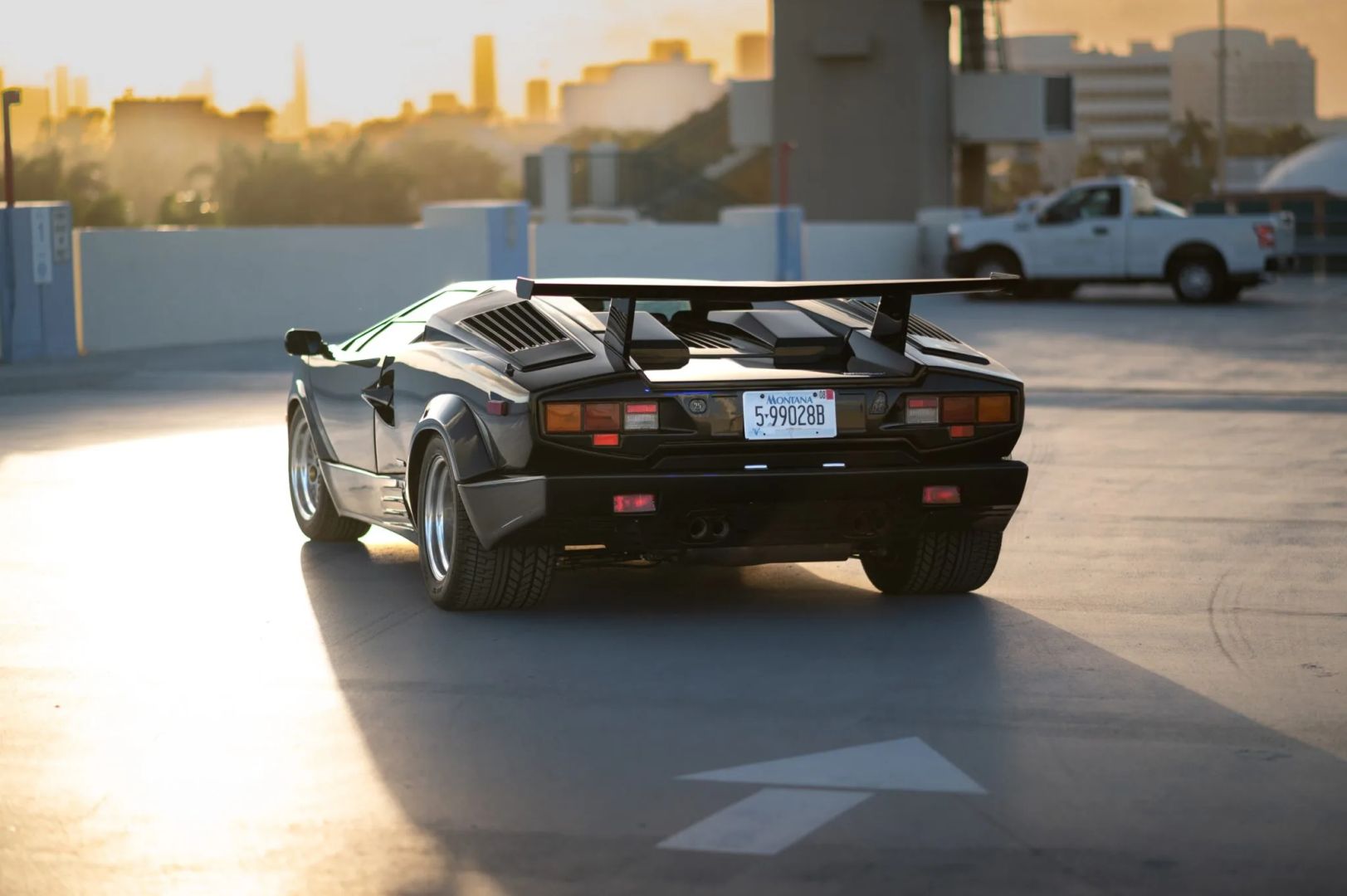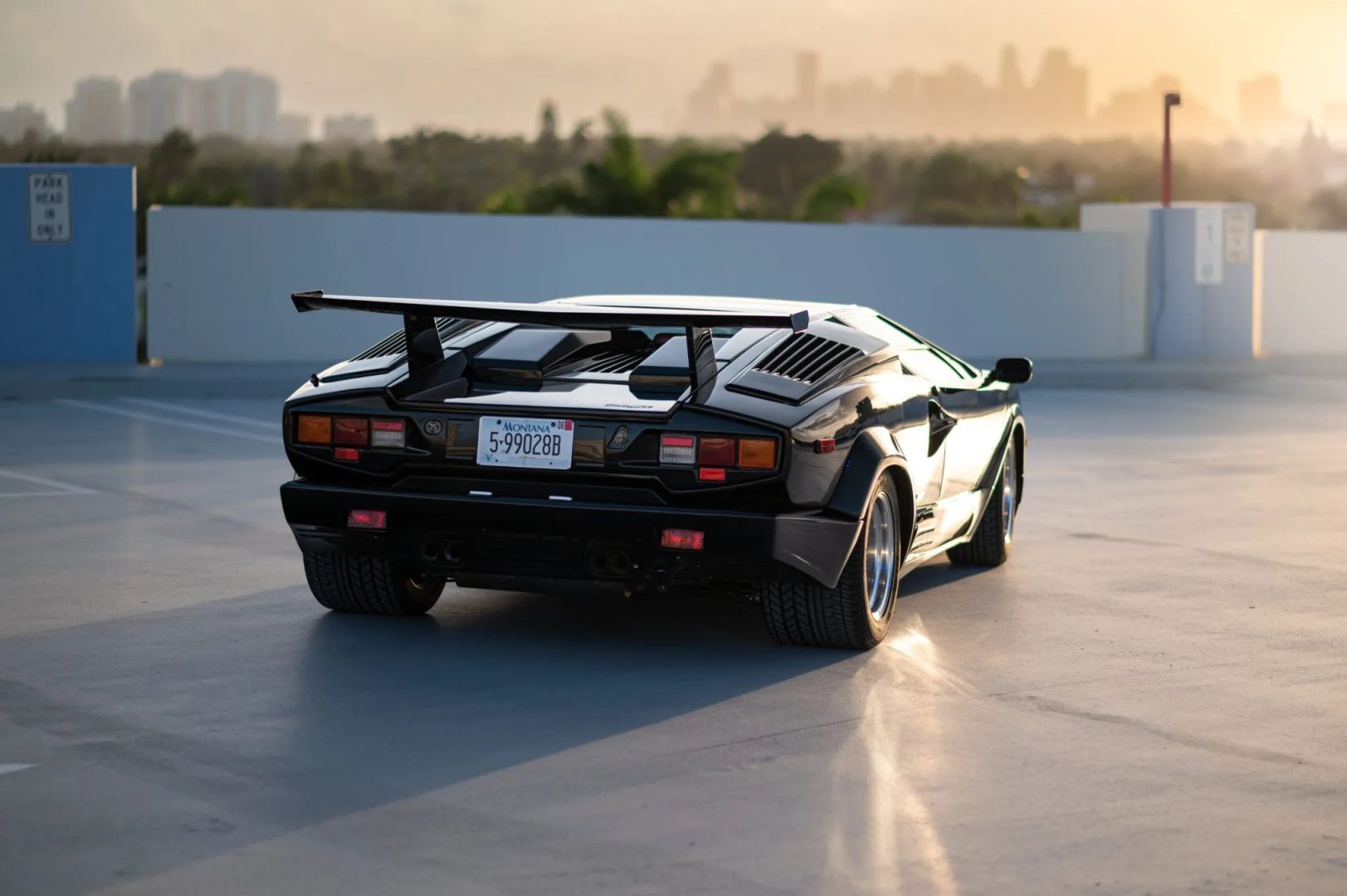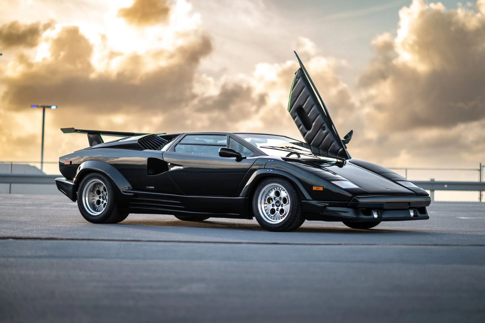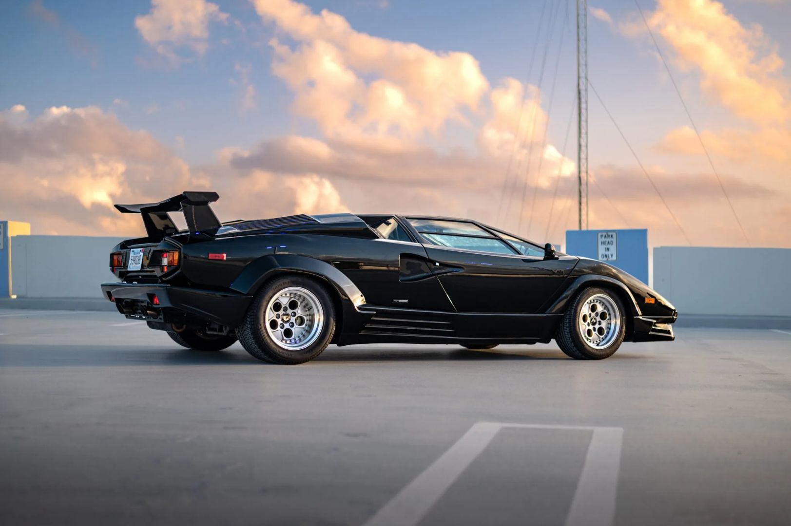 Nadwozie zdobi czarny lakier, a samochód został wyposażony w europejski przedni zderzak i potężne tylne skrzydło, które pomogło uczynić Countacha tak sławnym. Standardowe 15-calowe koła OZ Racing zachowały się i są owinięte w opony Pirelli P Zero Asimmetrico o wymiarach 225/50 z przodu i 345/35 z tyłu. W liście zaznaczono, że pompa hamulcowa została wymieniona w grudniu 2022 roku, przy okazji odbudowano zaciski hamulcowe.