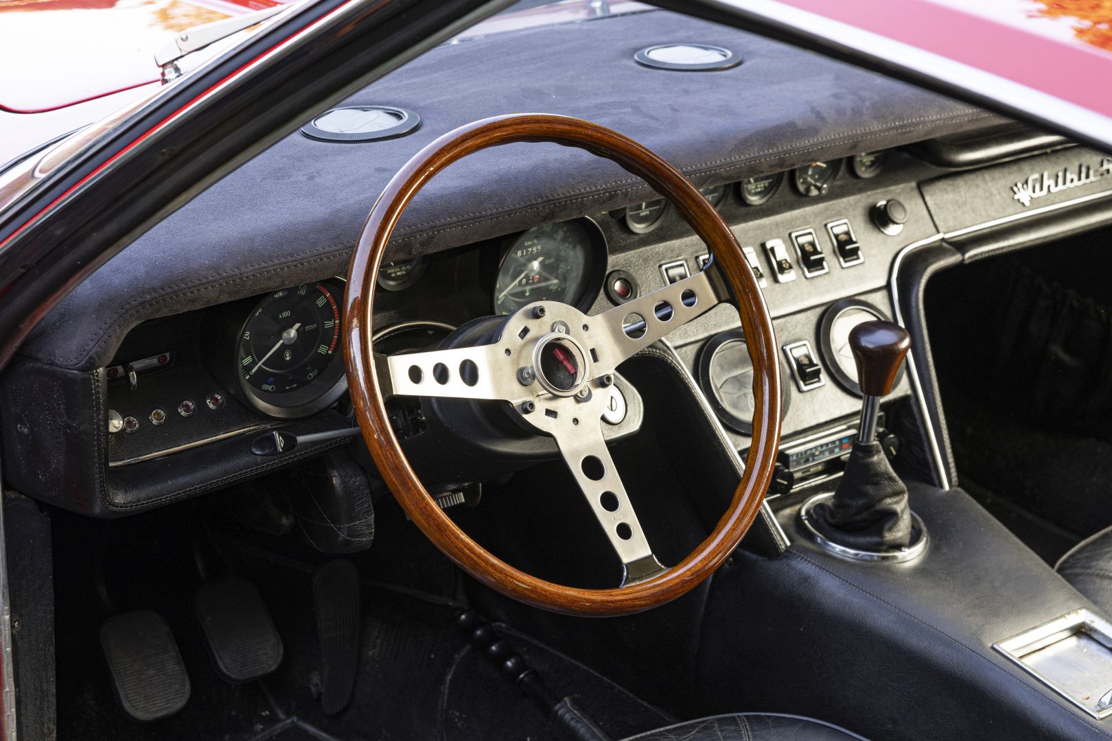 Uważa się, że z łącznej liczby 1170 egzemplarzy Ghibli, tylko 425 było w specyfikacji SS z 4,9-litrowym silnikiem. Podwozie 1586 jest jedną z takich maszyn. Wykończony w oryginalnych kolorach Rosso Fuoco z czarną skórą, zjechał z linii montażowej 6. października 1970 roku. Pierwotnie dostarczony do północnych Włoch, ostatnie lata Maserati spędziło w Belgii i Niemczech. Faktury pokazują, że 9580 euro zostało włożone w konserwację (w tym kompletny układ wydechowy).