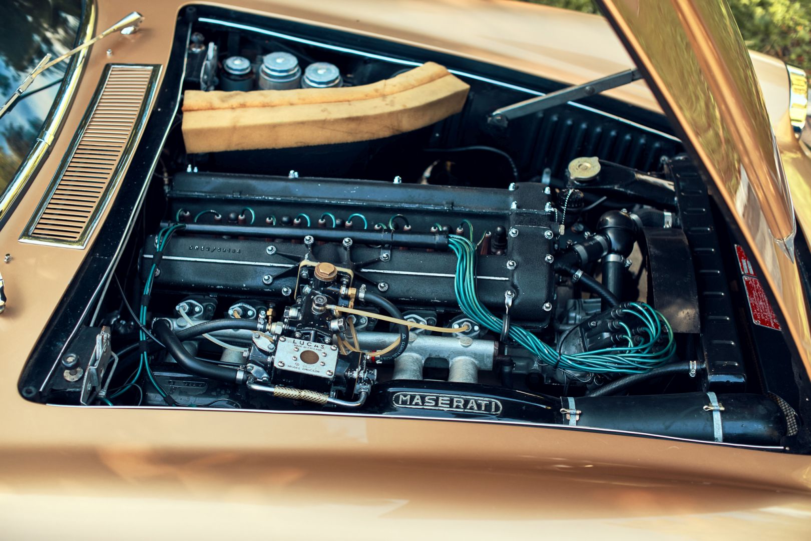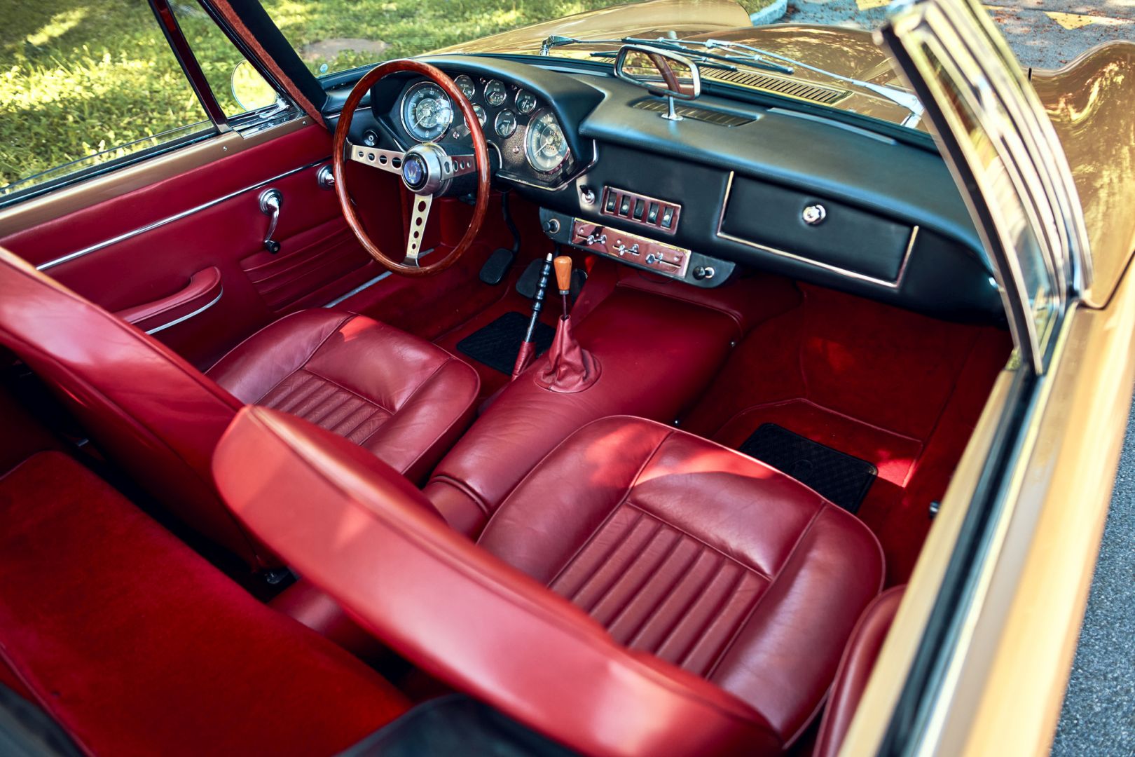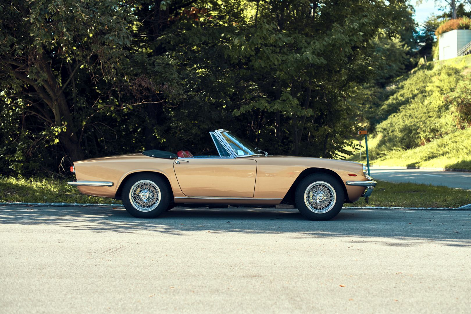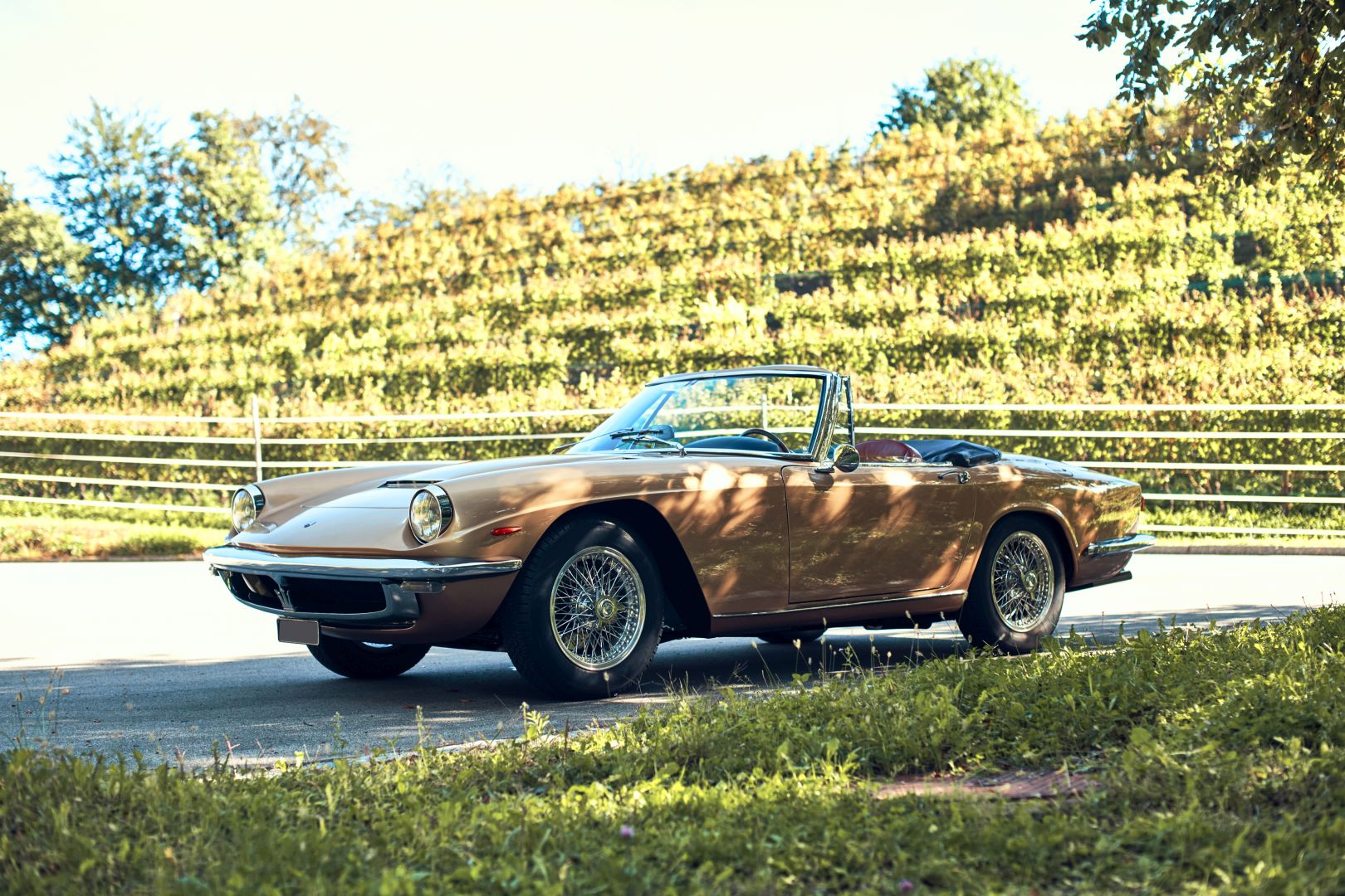 Pietro Frua nie był obcy Maserati, ponieważ po raz pierwszy współpracował z braćmi przy A6G. Nic więc dziwnego, że utalentowany projektant otrzymał zadanie stworzenia zarówno otwartych, jak i zamkniętych wariantów Mistrala. Maserati Spyder zadebiutował na Salonie Samochodowym w Genewie w 1964 roku z charakterystycznym grillem w kształcie rekina i ogonem Kamm, podczas gdy pod okazałym nadwoziem znajdowały się do wyboru sześciocylindrowe silniki rzędowe o pojemności 3,5, 3,7 lub 4 litrów, współpracujące z pięciobiegową manualną skrzynią ZF. Dla wielu najlepszym wyborem w gamie – tak jak w przypadku oferowanego tutaj egzemplarza – był wariant o pojemności 3,7 litra. Tak skonfigurowany pojazd osiągał do 100 km/h ze startu zatrzymanego w 6,2 sekundy i był w stanie pomknąć 254 km/h.