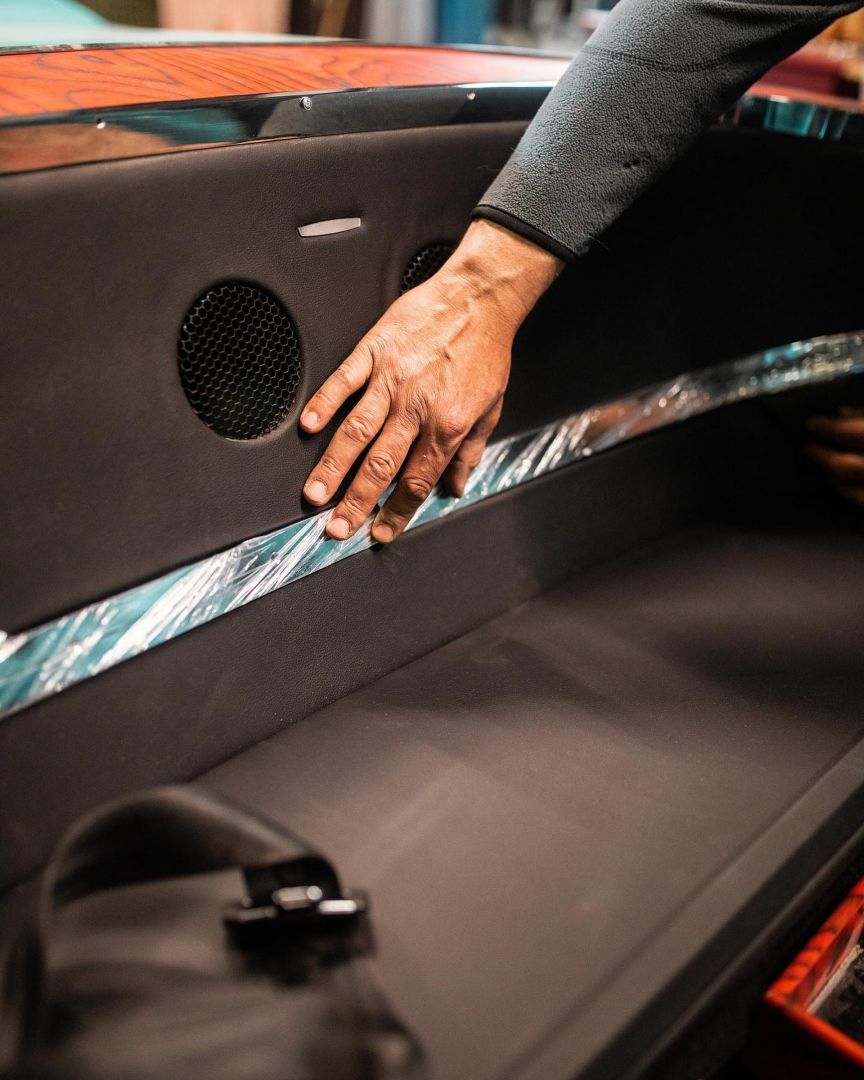 We wnętrzu zastosowano miękką, luksusową skórę Frau, dostarczoną przez firmę Poltrona Frau, która została użyta m.in. na siedzeniach. Z kolei firma D-Tales dodała do samochodu tylne, drewniane obramowanie. Zastosowanie innowacyjnej metody fornirowania ma gwarantować skuteczną ochronę przed czynnikami zewnętrznymi.