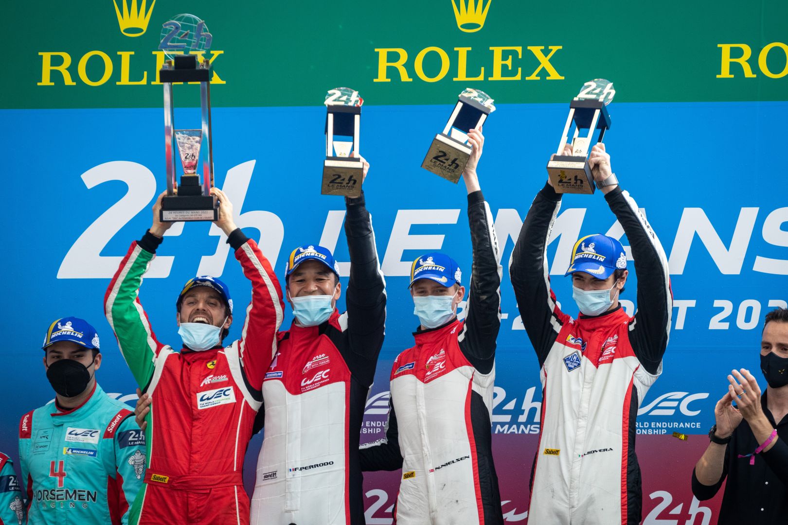 Alessandro Pier Guidi, James Calado i Côme Ledogar za kierownicą Ferrari #51 wygrali klasę LMGTE Pro, podczas gdy Nicklas Nielsen, François Perrodo i Alessio Rovera rządzili w klasie LMGTE Am. Iron Lynx 488 GTE, obsadzony przez Włochów Rino Mastronardiego, Matteo Cressoniego oraz Calluma Ilotta z Ferrari Driver Academy, uzupełnił podium w tej ostatniej kategorii. Wyścig o godzinie 16:00 w sobotę rozpoczął prezes Ferrari – John Elkann.