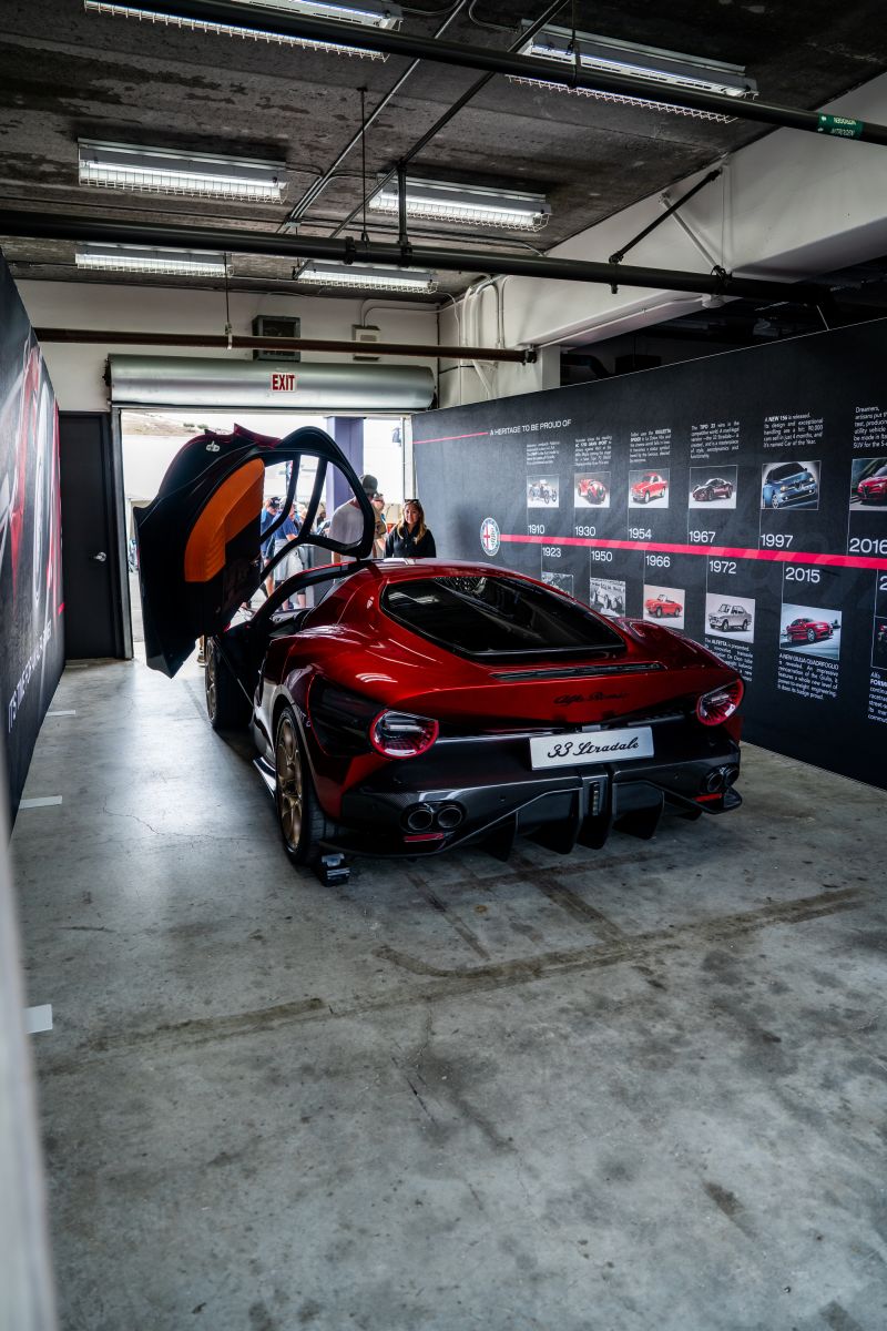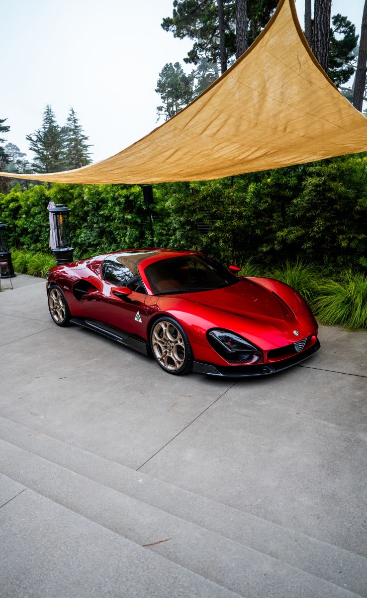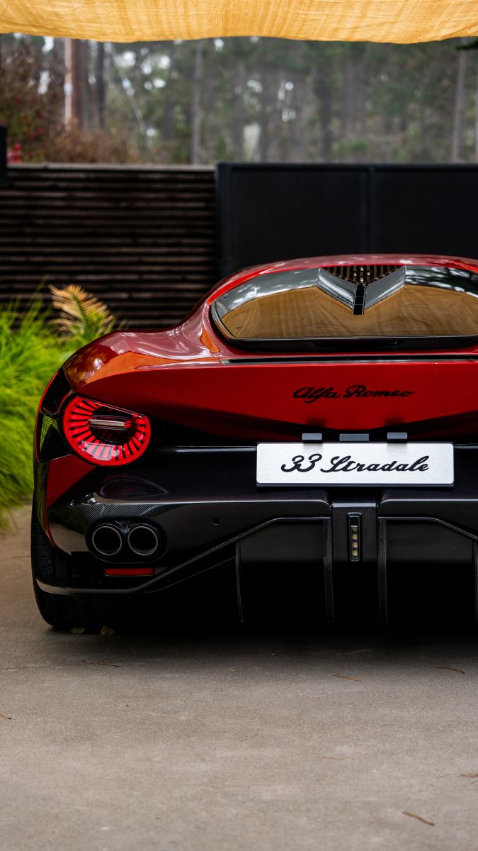 Monterey Car Week rozpoczęło wydarzenie Motorlux 13 sierpnia, podczas którego 33 Stradale zaprezentowano w otoczeniu modeli Giulia, Stelvio i Tonale. Wśród luksusowych samochodów i klasycznych samolotów na terenie Monterey Jet Center, model wyróżniał się unikalnym połączeniem elegancji, osiągów i inspiracji lotnictwem.
