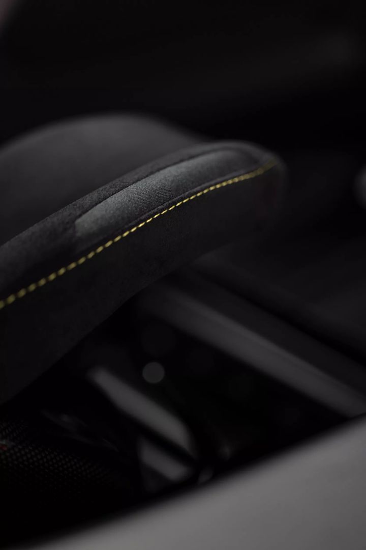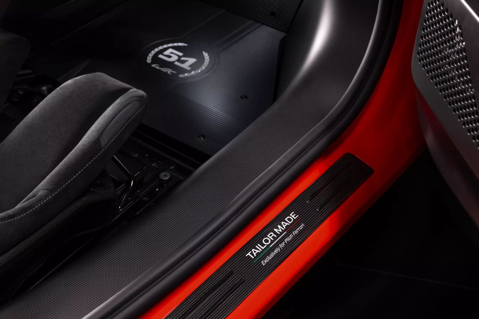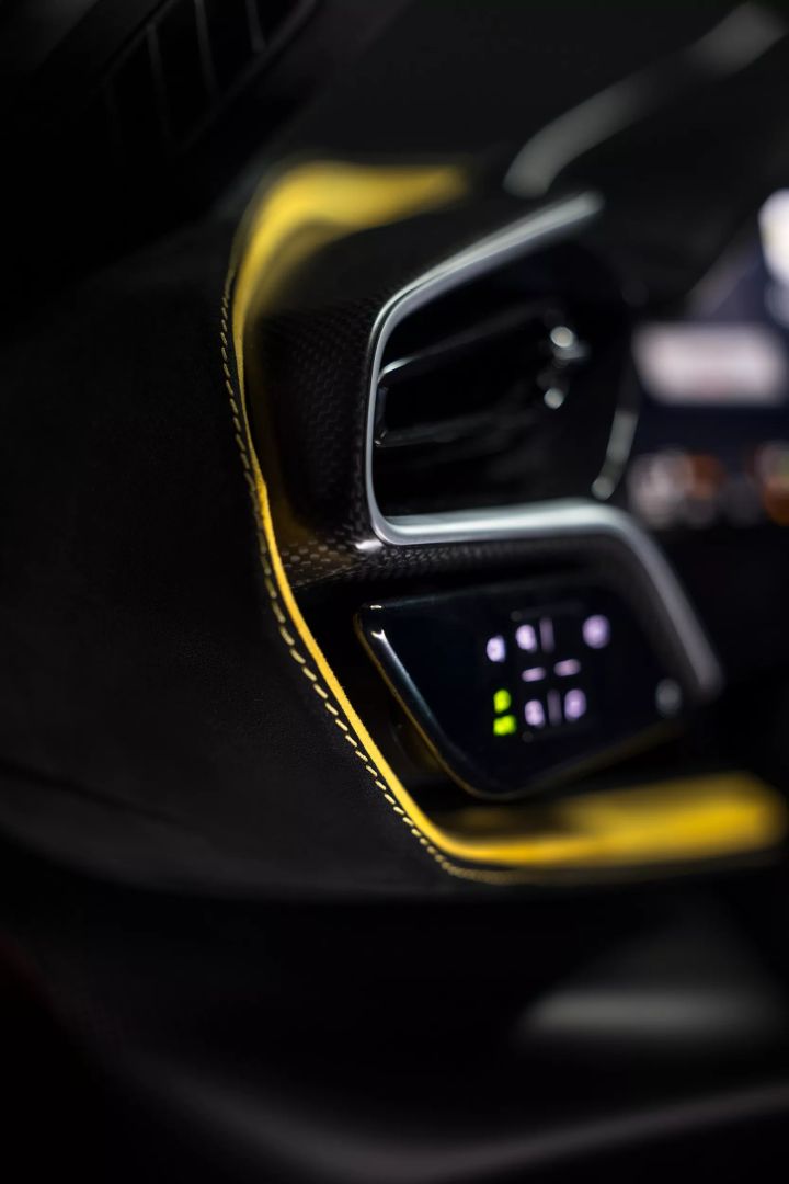 We wnętrzu 296 Speciale znajdziemy czarne siedzenia z Alcantary, a także płytkę z włókna węglowego z oznaczeniem edycji. Dodatkowo samochód wyposażono w personalizowane nakładki progowe z włókna węglowego. Na kierownicy znajdziemy centralny pasek z włoską flagą.