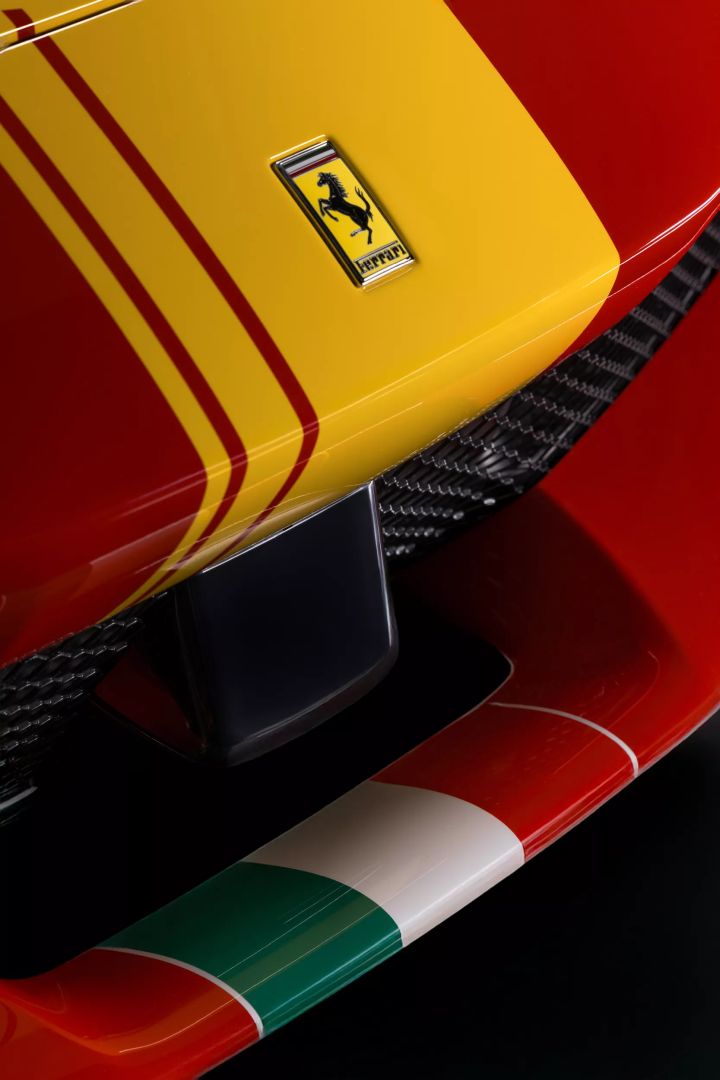 Auto oferowane jest w czterech kolorach inspirowanych wyścigami: Rosso Scuderia, Blu Tour De France, Nero Daytona oraz Argento Nürburgring. Każdy z nich wzbogacony jest o malowanie inspirowane 499P z żółtymi akcentami Giallo Modena, ręcznie malowanym logotypem WEC oraz motywem włoskiej flagi na przednim zderzaku. Kupujący mogą również wybrać własny numer startowy, co nadaje pojazdowi jeszcze bardziej indywidualny charakter.
